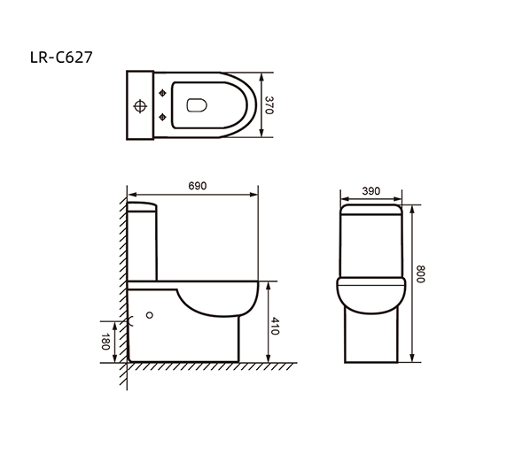 Flush System: Washdown, RIMLESS Water Outlet: P-trap 180mm roughing-in