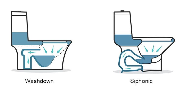 Toilet flushing methods are mainly divided into washdown flushing type and siphonic flushing type. The upgraded version of the siphonic is jet siphon and vortex siphon.