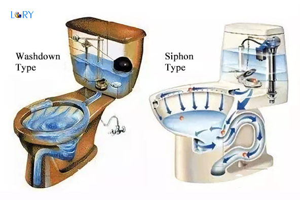 The flushing methods of toilets are mainly divided into two types: Siphonic and Washdown Toilet flushing.